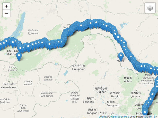 Я сделал это! Я размапил 350+ видео поездки Москва-Владивосток по карте! Теперь снова можно нажать в любую точку Транссиба и повтыкать на вид из окна вагона! Для тех, кто не очень в теме: в 2010-м году Гугл совместно с РЖД записали на видео двухнедельную поездку из Москвы во Владивосток (видимо, старались снимать только в дневное время) и сделали небольшой сайт, где это видео было привязано к карте. Ещё там можно было повыбирать звуковое сопровождение: стук колёс, радио, аудиокниги. К сожалению, оригинального звука никогда не было. Тот сайт прожил где-то до середины 2015-го, но видео лежат на Ютубе до сих пор. Конечно, качество заставляет желать лучшего, но других подобных записей - чтобы по Транссибу от и до без всякого монтажа - я не встречал. Итак, вот вам середина Транссибирской Магистрали, станция Половина: https://videomapia.org/#14/52.954221/103.282514. Хотите - мотайте к Москве, хотите - к Владивостоку. Смотреть видео без остановки как на оригинальном сайте много лет назад, к с