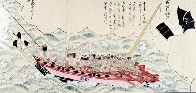 В японском фольклоре особое место занимает баке-куджира — демоническое существо, которое выглядит как призрачный скелет кита. Его неизменно сопровождают невиданные и уродливые рыбы и птицы. Призрак всегда предвещает горести: мор, пожары, голод и войны. Разумеется, все это — месть за китобойный промысел.