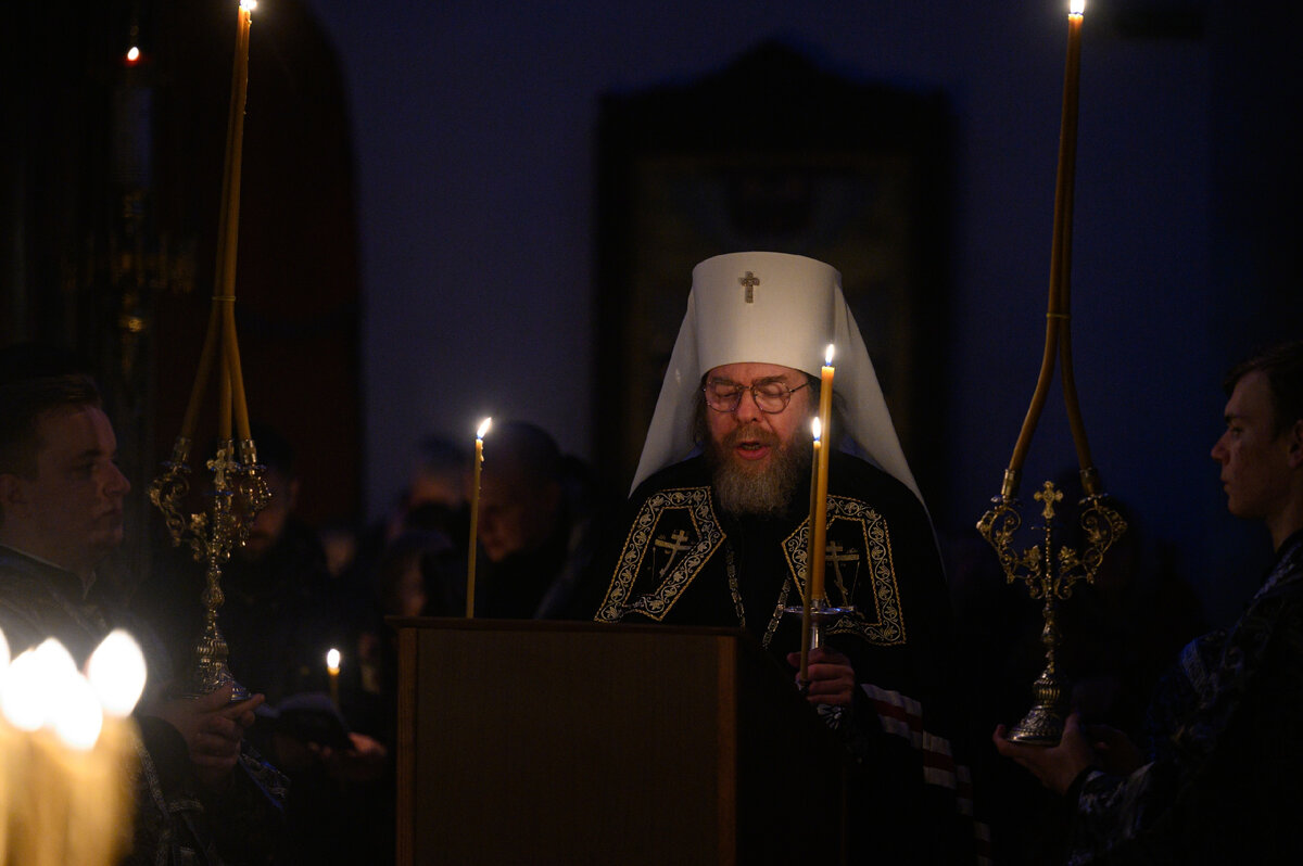 Митрополит Псковский и Порховский Тихон совершил чтение покаянного канона святого Андрея Критского в Свято-Троицком кафедральном соборе