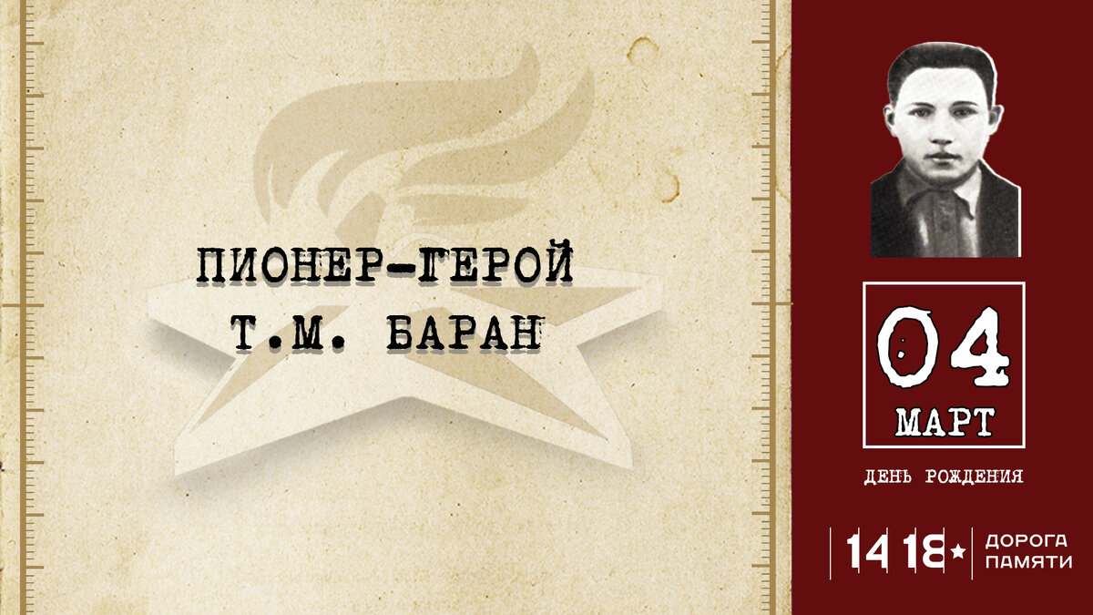 Тихон Максимович Баран - советский пионер-герой, партизан. Он родился 4 марта 1932 года в деревне Байки, неподалёку от Бреста.