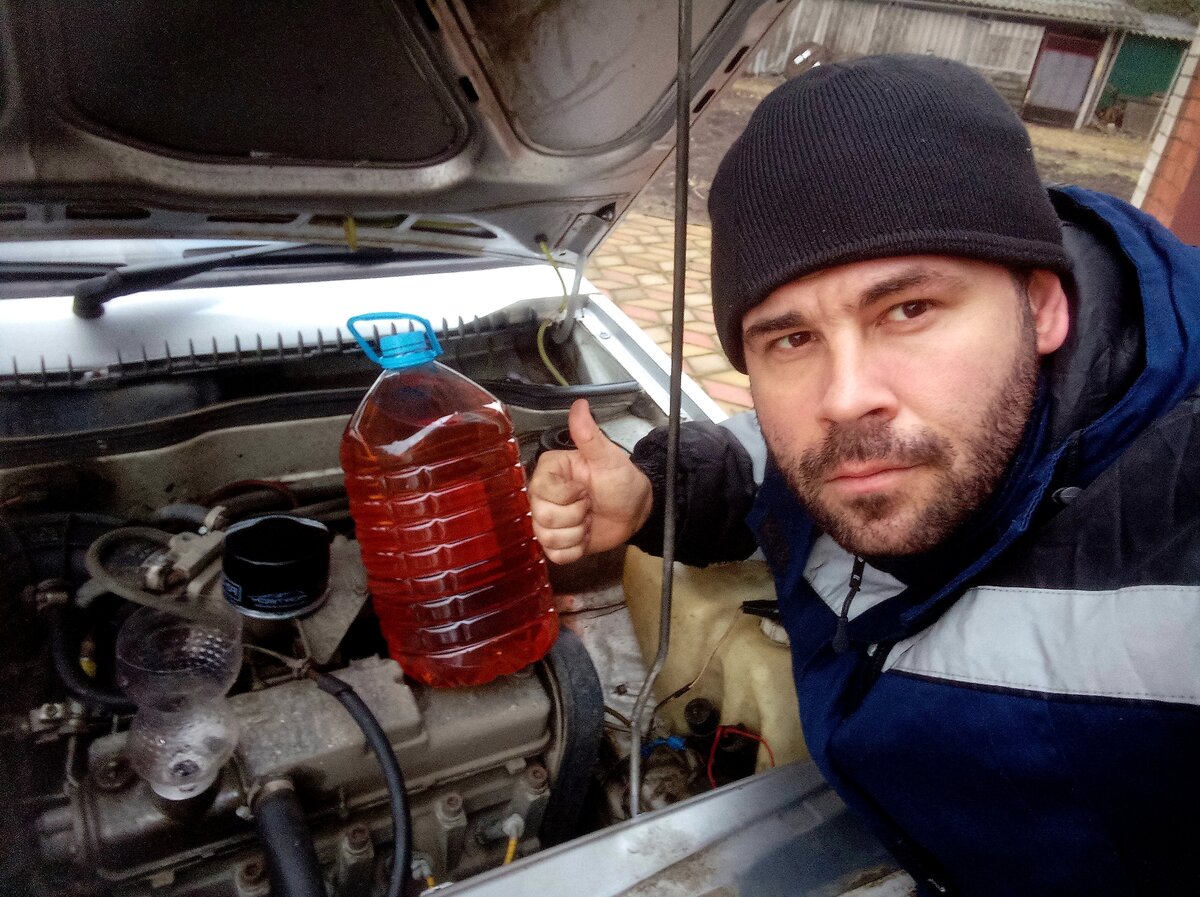 3. Вы просто берете пластиковую бутылку, обрезаете её и вставляете в маслозаливную горловину на двигателе. Наливаете свежего масла грамм 300 в стакан и заливаете в двигатель. Пробка для слива масла должна быть закручена.