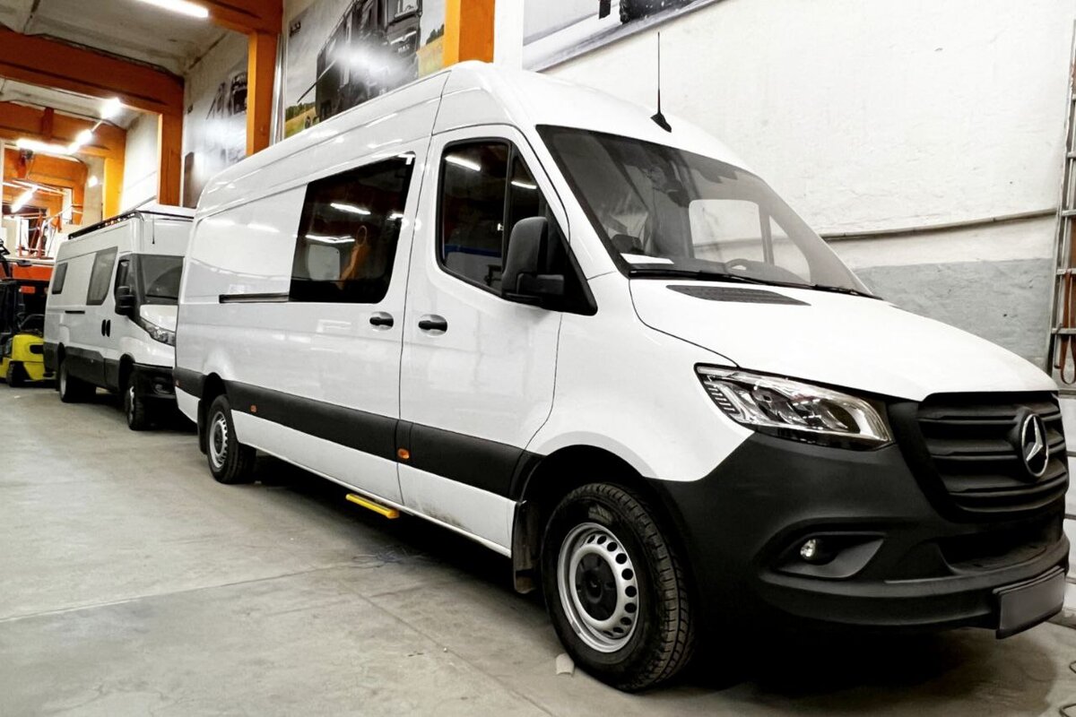 Друзья! Посмотрите на эти 2 красавца! Совсем скоро они превратятся в стильные и современные автодома. Кстати, они оба поедут в тёплые регионы России, и , конечно, белый цвет – самое оптимальное решение для таких условий эксплуатации.