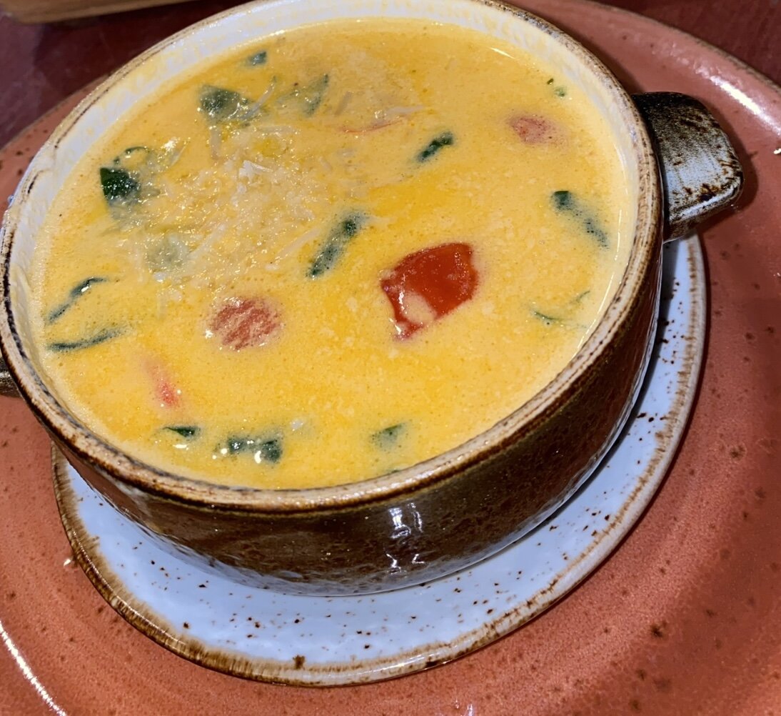 Ингредиенты Приготовление Рыбу нарезаем кубиками, убираем в сторону . Остальную часть вместе с кожей и костями отправляем в кастрюлю и варим рыбный бульон минут 15. В сотейнике разогреть оливковое масло и обжариваем лук до золотистого цвета затем добавляем замороженные креветки и порезанную на кусочки рыбу. Накрыть крышкой . Когда жидкость начнет выкипать добавляем томаты черри на среднем огне тушим 5 минут. Влить сливки , посолить , поперчить . Не доводя до кипения убрать в сторону. Из бульона убираем рыбу с кожей . Рыбный бульон вливаем в сотейник добавляем шпинат перемешиваем немного солим и посыпаем сверху пармезаном . Приятного аппетита .