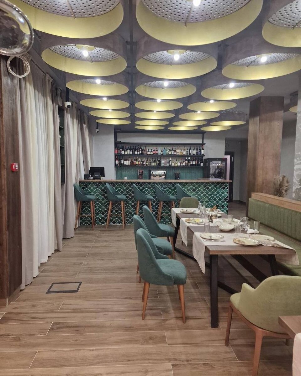 Неподалёку реки Обь, в уютном районе города Барнаул, расположился потрясающий ресторан «Русский Чай», в котором вы можете увидеть великолепную керамическую плитку ручной работы от ПентаКерамики. «Рыбья чешуя» стала настоящей изюминкой всего заведения, а нам остается лишь наслаждаться результатом. При выборе оформления, наш заказчик хотел сделать уникальный интерьер, который захочется рассматривать, наслаждаясь чаепитием за непринужденными беседами в интересном и уютном ресторане. Интерьер ресторана был реализован в пастельно оливковых и нежно-зелёных тонах, поэтому необходимо было дополнить его такой же цветовой палитрой. Коллекция «Рыбья чешуя» была изготовлена в нескольких вариантах зелёного цвета, но выбор остановился на мягких переходах от цвета Юки к цвету Атлантиды. СМОТРЕТЬ КОЛЛЕКЦИЮ «РЫБЬЯ ЧЕШУЯ» Наш адрес: Москва, Дмитровское ш. 163 А корп. 2, БЦ SK Plaza: