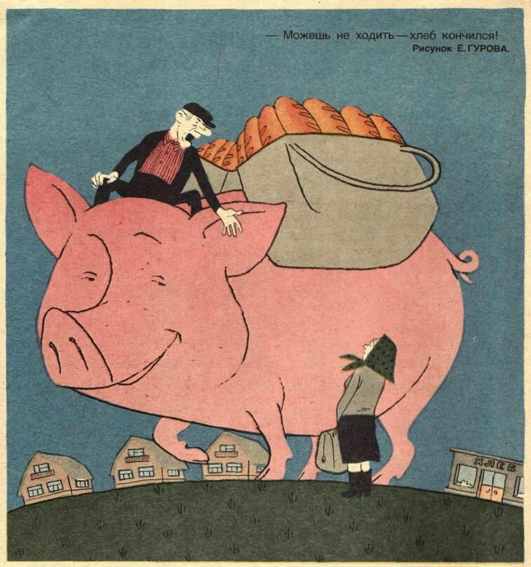 1. Блогер monetam продолжает публиковать карикатуры из журнала «Крокодил» середины 1980-х. Одна из самых распространённых тем карикатур, волновавших тогда советское общество – кормёжка хлебом домашнего скота, как на заглавной картинке (ссылка).