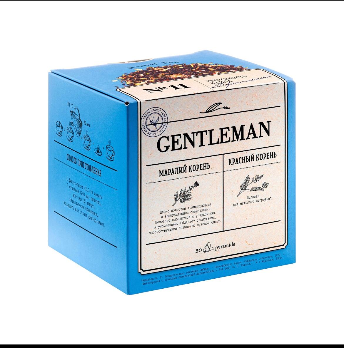 Чайный напиток способствует укреплению мужского здоровья, обладает противовоспалительным и бактерицидным свойствами. Активные растительные вещества в составе Gentleman обладают веками использования в народной медицине и самыми современными научными исследованиями. Уникальная для подобных напитков форма пирамидок помогает чайным листам и травам раскрыться и сделать чаепитие удобным, вкусным и полезным.