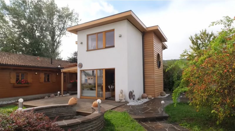 Первое,что хочется сказать про дом: «Ну, какая же это милота.» И этот маленький Будда, и эти круги на стенах, и эти чудные раковины в доме. Во всем этом ощущается, какая-то самобытность. И даже, то что он двухэтажный. В данном случае, это скорее плюс, чем минус. Я не так часто показываю двухэтажные дома, но такой вариант вполне хорош. Он отлично подойдет, для маленьких участков. У него приятный экстерьер, светлые, красивые фасады и планировка, вполне удобная.