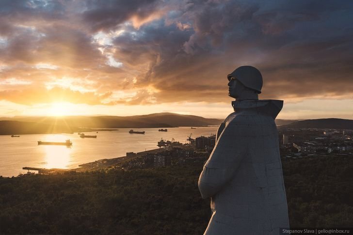 10. Мемориал защитникам Заполярья «Алёша». Считается, что ласковое прозвище монумент получил из-за популярной в СССР одноимённой песни, в которой прославлялся болгарский памятник советскому воину-освободителю. Его прообразом был участвовавший в освобождении Болгарии рядовой Алексей Скуратов.
