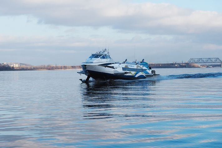 В акватории реки Волги начались заводские ходовые испытания головного скоростного пассажирского судна на подводных крыльях (СПК) проекта 03830 "Метеор-2020", строящегося на Зеленодольском заводе имени А.М. Горького
