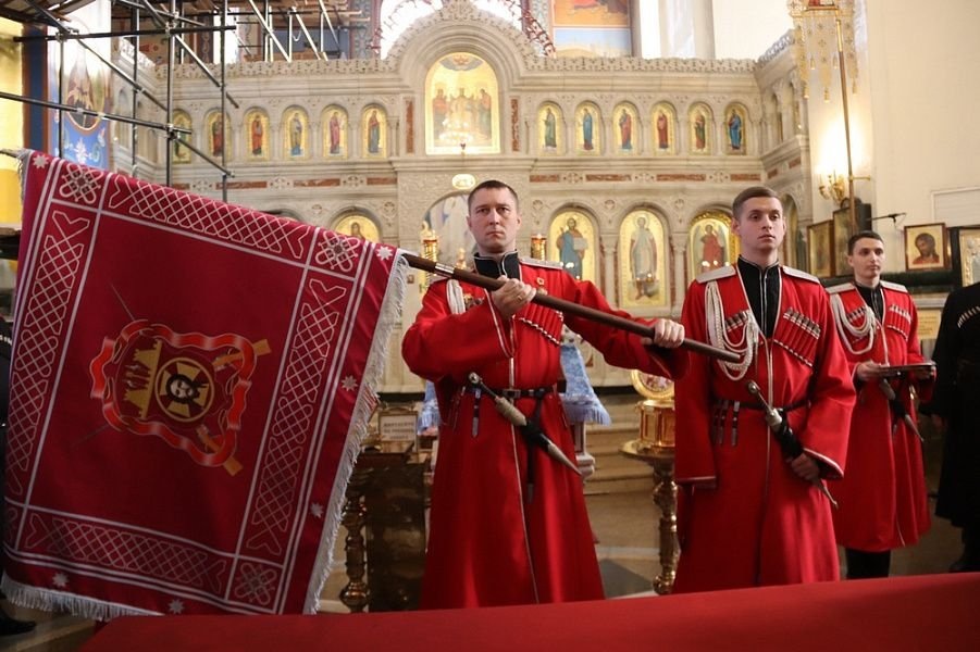 Церемония освящения знамени казачьей бригады «Кубань» прошла в рамках мероприятий, посвященных 326-й годовщине образования Кубанского казачьего войска и Дня кубанского казачества. Они стартовали в Краснодаре с божественной литургии в войсковом соборе Александра Невского, где собрались свыше 500 казаков из Краснодар