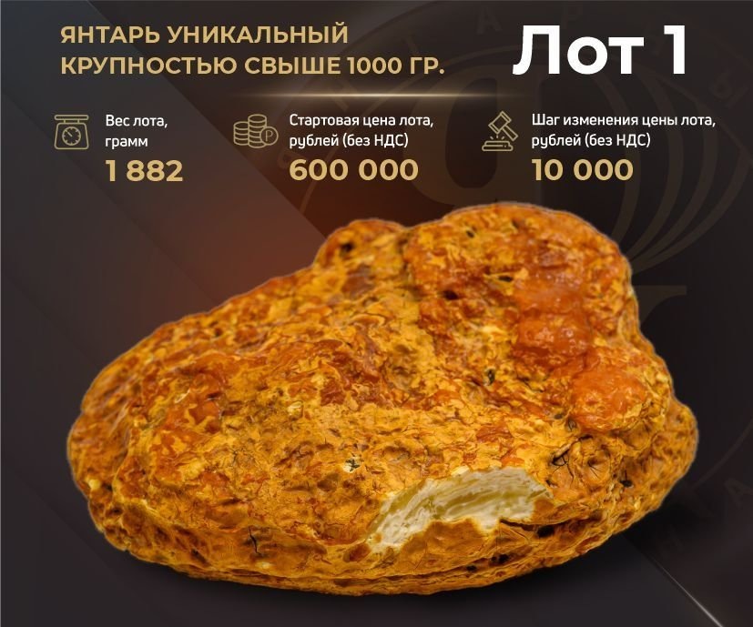 На Калининградском янтарном комбинате Госкорпорации Ростех стартовал прием заявок на участие в онлайн-аукционе по купле-продаже солнечного камня. Главными лотами станут пять уникальных по весу и форме самородков. Возраст некоторых камней около 50 млн лет. Лоты смогут приобрести как российские, так и иностранные компании, а также коллекционеры.
