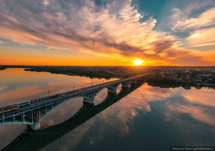 3. Мост через Бию — часть Чуйского тракта. Автомобильная дорога М-52 идёт от Новосибирска до границы с Монголией, но считается, что именно с Бийского моста и начинался Чуйский тракт. Эта торговая дорога упоминается в китайских хрониках тысячелетней давности, но вместо моста на ней использовалась переправа. Сначала это был канатный паром, затем паром с буксиром.