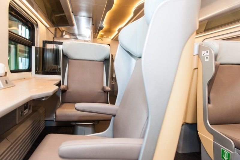 Новый вагон-бистро получил усовершенствованный кузов, который позволил расширить салон обеденного зала на втором этаже. Помимо четырехместных столов теперь здесь появилась продольная стойка с поворотными креслами. "Для комфорта и удобства пассажиров в салоне бистро установлены дополнительная кофе-машина, две ТВ-панели, информационные табло. Кроме того, предусмотрены надоконные полки для личных вещей пассажиров и стеллаж для багажа", - говорится в сообщении.