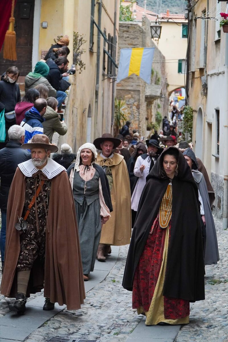 Начало публикации здесь. Что же происходило в воскресенье, в заключительный день праздника в борго Taggia? Смотрите, друзья.o Шествие в честь праздника святого началось с процессии. С разных сторон в борго входили нарядно одетые в средневековые костюмы участники процессии. Зрители расположились вдоль домов и улиц, и снимали, снимали без устали. Да и как не запечатлеть такие прекрасные моменты... А потом началось сражение, как то, что произошло в 1625 году... "Наши" победили, а как же иначе)) Потом наступил мир, справедливость восторжествовала.. Еще фотографий на память о празднике: Если вы еще не влюбились в Лигурию, то тогда вам на юг, прближе к Риму.. И хорошего отдыха!