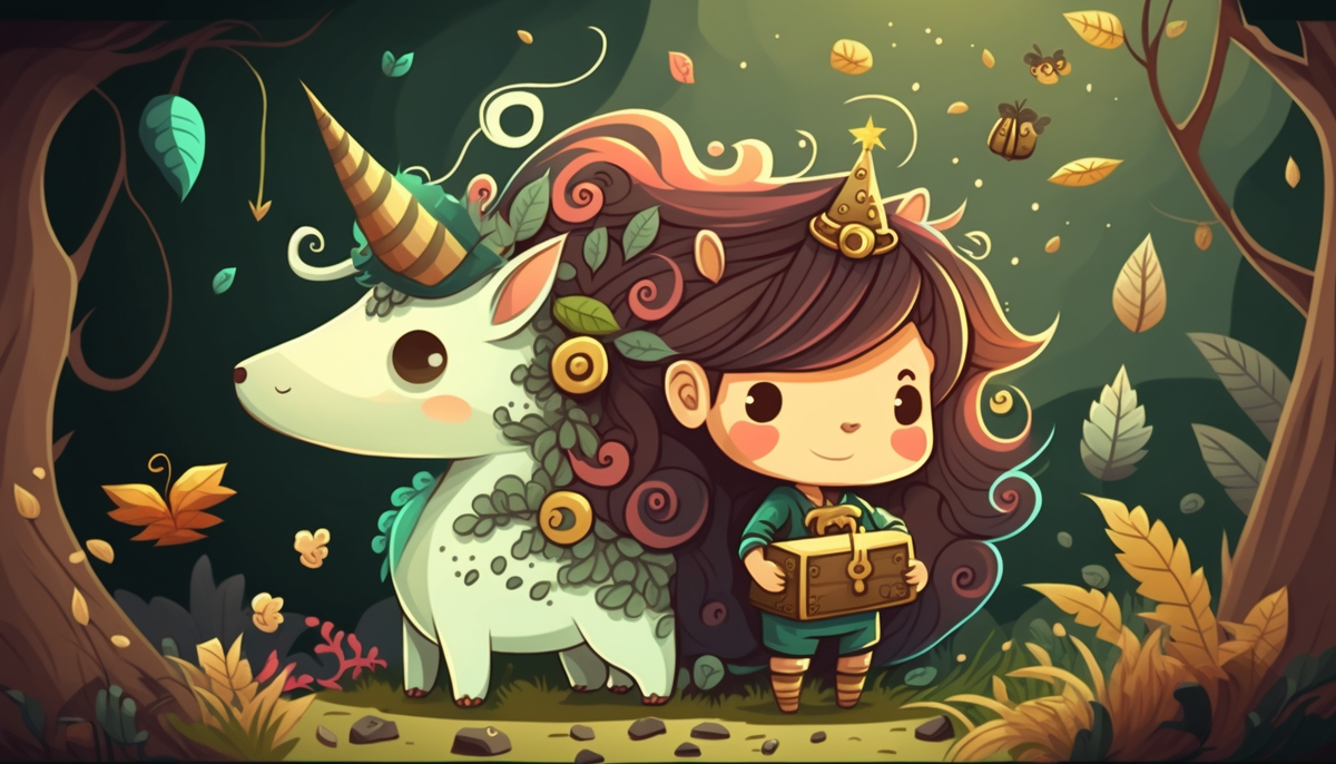 В Зачарованном лесу, где трава так зелена, жил единорог, такой храбрый и зоркий. Ее звали Искорка, у нее была такая яркая грива, а ее глаза сияли, как звезды в ночи.