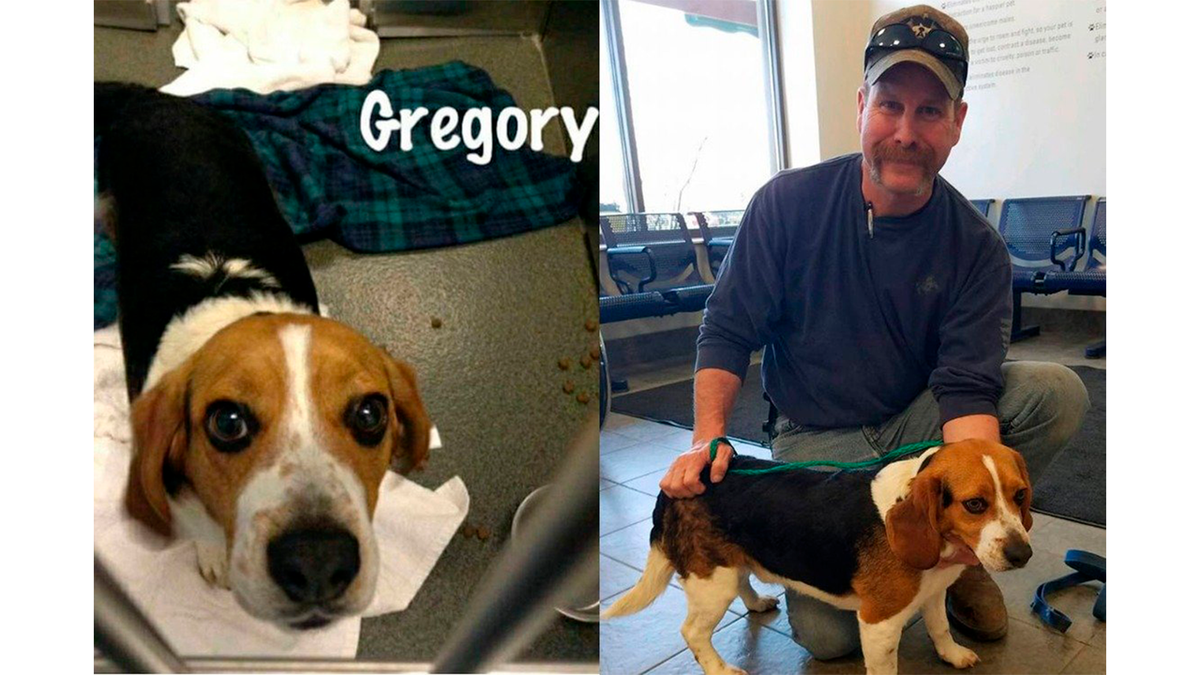 Двухлетнему биглю по имени Грегори диагностировали дирофиляриоз — болезнь сердечного червя, при которой в сердце, легких и кровеносных сосудах животного селятся смертельно опасные паразиты. Приют, в котором проживала собака, не мог оплатить ее лечение. Грегори ждал усыпления, но буквально за два дня до планируемой «процедуры» он обрел шанс на жизнь! Основатели благотворительной организации Hound Rescue and Sanctuary Джо Кирк и его жена Шэнли спасли Грегори. Они забрали его в свой небольшой приют, который не только ищет брошенным животным новых хозяев, но и продолжает заботиться даже о самых безнадежных кошках и собаках — таких, каким был Грегори. Вот какими объятиями песик отблагодарил Кирков за спасение. В приюте биглю была оказана ветеринарная помощь. Вскоре после того, как песик стал полностью здоров, Кирки перевезли его в свой дом. В семье, кстати, уже жил один бигль — поэтому Грегори обрел не только любящих хозяев, но и братика!