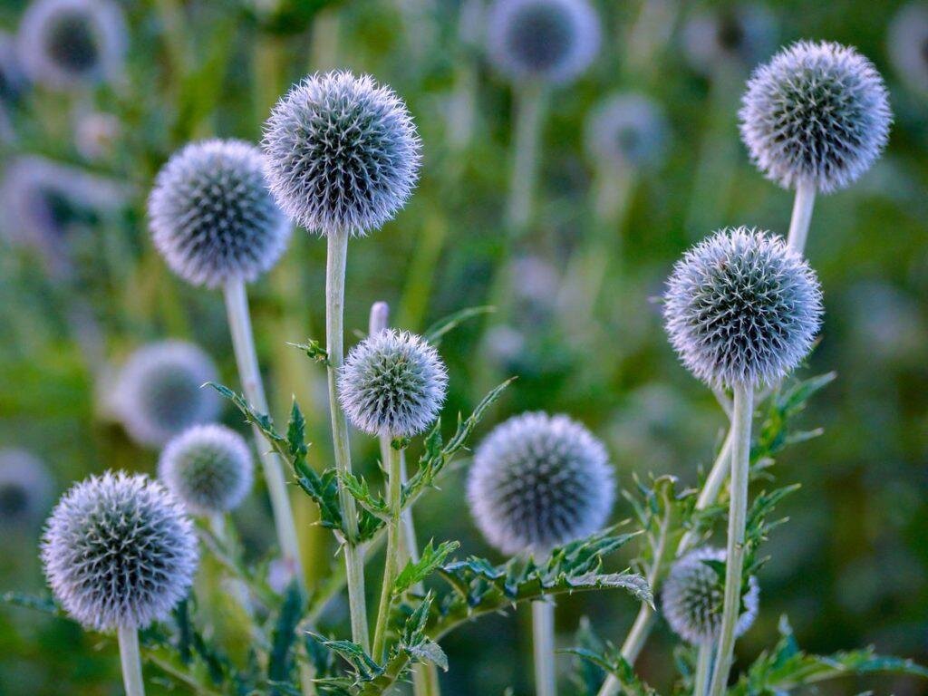 Это растение стало пользоваться популярностью в последние годы. Называется оно - мордовник. Он гармонично вписывается на любой участок и "разбавляет" цветущий сад своим необычным, но очень эффектным внешним видом. Его соцветия, в форме небольших шаров, синего или голубого оттенка, похожи на колючих ёжиков. Они красиво смотрятся не только в саду, но и в букетах, свежими или сухими. Мордовник, благодаря графичным соцветиям, придаёт саду структуру и выразительность. Он идеально подходит для сада, оформленного в натуралистическом стиле, в компании с розами, перовскией или астранцией. Растение совершенно неприхотливо, хорошо растёт даже на бедных грунтах, не боится засухи. Предпочитает тепло и солнечный свет, влагопроницаемую почву. Кроме того, редко подвергается заболеваниям и вредителям. Чаще всего, это многолетнее растение, хотя бывают однолетние и двухлетние виды. Высота растения, в среднем, составляет около 1 метра. Цветёт мордовник в июле-августе. Соцветия состоят из крошечных цвет
