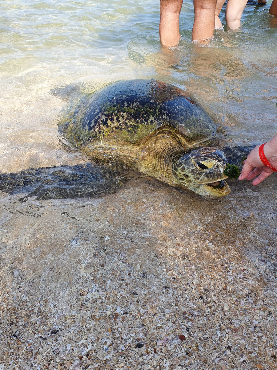 На Шри Ланке в деревне Хиккадува, прямо напротив отеля Hikka Tranz, находится довольно известный черепаший пляж. В этом месте возле берега, постоянно плавают две-три взрослые черепахи, которых туристы подкармливают водорослями, купленными здесь же у местных На самом деле, складывается впечатление что черепахи приплывают сюда не за едой, по крайней мере, водоросли они едят редко и неохотно, мне кажется им просто интересно, всегда толпы людей, многие пытаются погладить или хотя-бы потрогать это забавное создание природы Но мало кто знает, точнее обращает внимание, на черепаший инкубатор, на этом же пляже, он находится рядом с вышкой спасателей. На табличках возле каждой делянки, указана приблизительные даты начала и конца инкубации Иногда некоторые не очень сознательные животные, пытаются выкопать яйца, дабы полакомиться, поэтому за инкубатором приглядывают спасатели, которые находятся здесь круглосуточно. Они же выпускают новорожденных черепах в море, выглядит это очень забавно и мило.