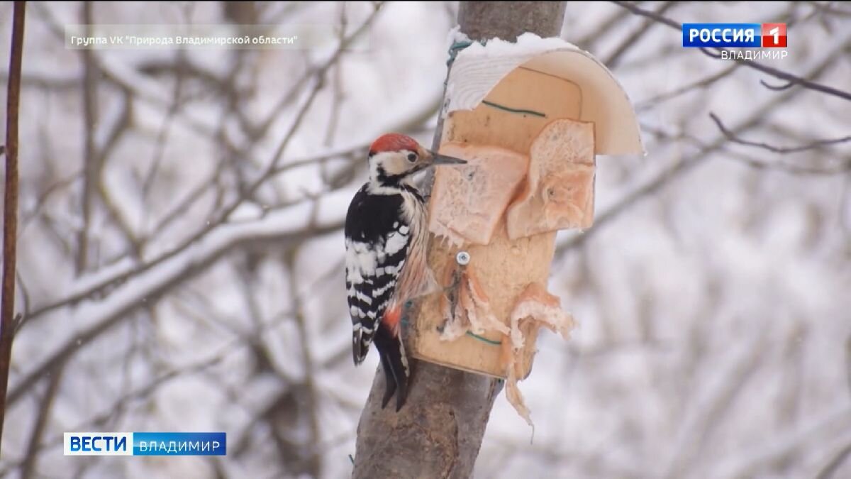 Владимирского белоспинного дятла за трапезой поймали любители природы. Видео появилось в паблике "Природа Владимирской области". Абсолютно, не стесняясь направленного на него объектива, дятел уплетает деликатес, надежно прибитый гвоздями к кормушке. Сало на столе у дятлов появляется редко, так что этот обед для птицы действительно "царский". (Кадры: ВК "Природа Владимирской области") ГТРК "Владимир" Во Владимирской области сняли красивые кадры со снегирями у кормушки Жители Владимира наблюдают за птицами, которые делят между собой корм