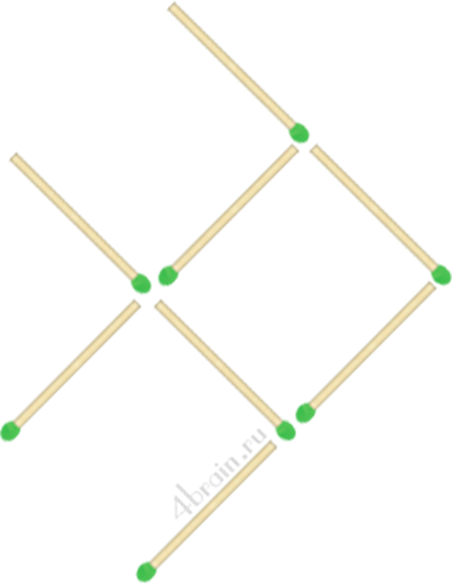 1. Развернуть рыбку Задание. Переставьте три спички так, чтобы рыбка поплыла в обратном направлении. Другими словами, нужно повернуть рыбу на 180 градусов по горизонтали. 2. Подобрать ключ Задание. В этой задаче из 10 спичек сложена форма ключа. Передвиньте 4 спички так, чтобы получилось три квадрата. 3. Поле для крестиков-ноликов Условие. Необходимо переложить 3 спички так, чтобы получить ровно 3 квадрата. 4. Головоломка «бокал с вишенкой» Условие. С помощью четырех спичек сложена форма бокала, внутри которого лежит вишня. Нужно передвинуть две спички так, чтобы вишня оказалась за пределами бокала. Разрешается менять положение бокала в пространстве, однако его форма должна оставаться неизменной. 5. Пять из девяти Условие. Перед Вами девять маленьких квадратов, образованных двадцатью четырьмя спичками. Уберите 8 спичек, не трогая остальных, чтобы осталось всего лишь 2 квадрата.