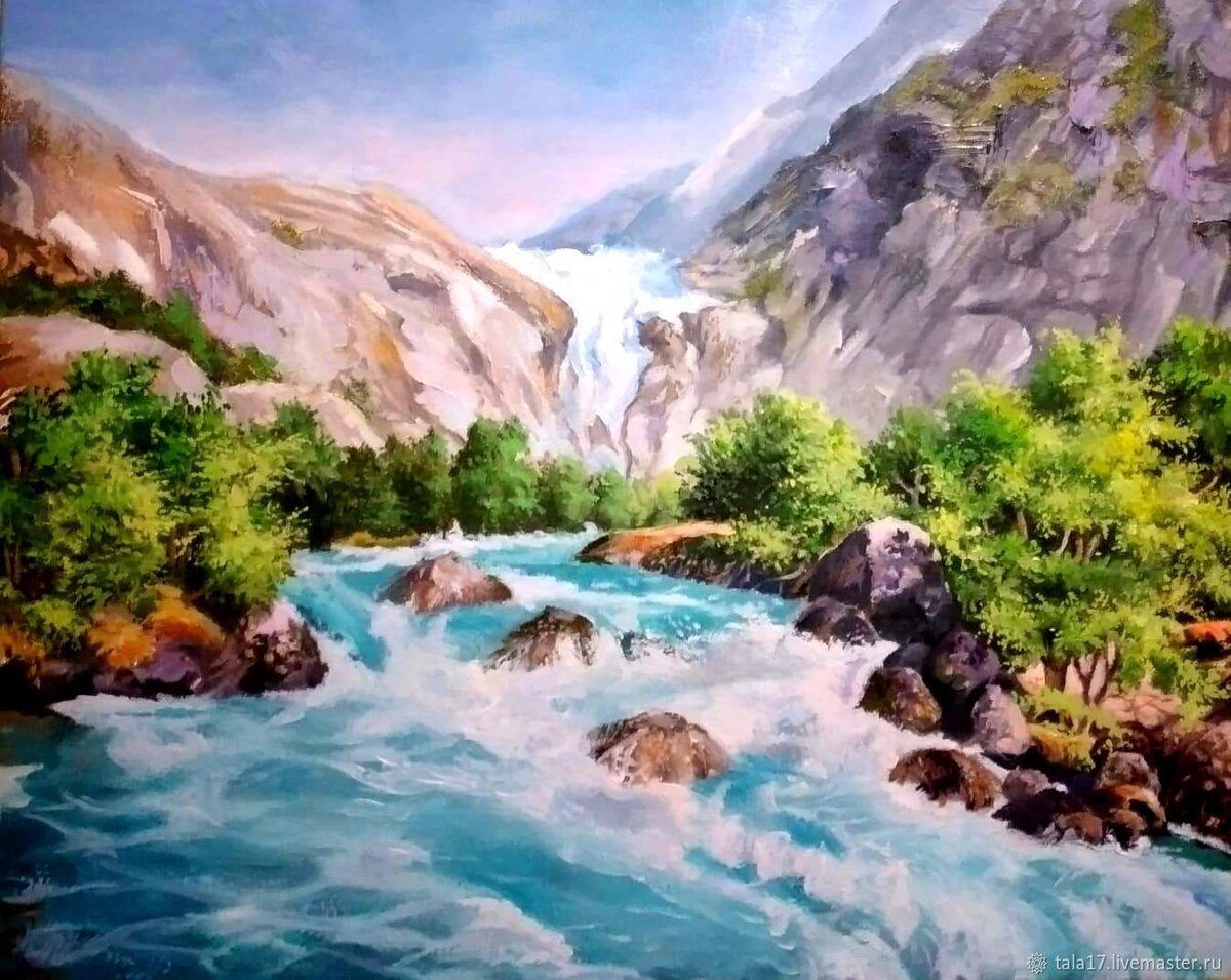 Вторая картина изображала горы. Но они были неровные и голые. Сверху было изображено разбушевавшееся небо, шел дождь, сверкала молния. По горной стене падал пенящийся водопад. Все это вовсе не выглядело мирно.