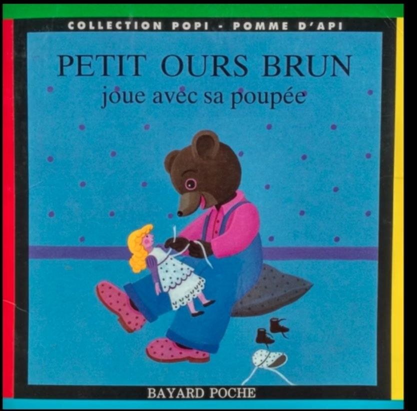 Когда мы с сыном едем в автобусе, он просит меня рассказать что-то и я декламирую ему детскую поэзию на русском языке. (Зря что ли на актерском училась 🤭) Однажды рядом сидела пожилая мадам и в перерыве между "Айболитом" и "Федориным горем" поинтересовалась, что это я такое ему рассказываю. Да ещё и в стихах. Дело в том, что во Франции практически нет детской поэзии. На меня смотрели немного странно, когда я в библиотеке спросила посоветовать стишки для малышей. Некоторые популярные французские книжки для детей в возрасте 2-3 года очень и очень странные. Например, есть серия про жизнь маленького коричневого медведя. Там наравне с вполне понятными и действительно клевыми сюжетами встречается кое-что. Вот, например, книга "Маленький коричневый медвежонок играет со своей куклой". Открываваем...(Надеюсь, вы простите меня за дизайн перевода) Ну как вам? Мне, когда первый раз увидела, стало не по себе. Ещё эти черные глаза. Бррр.