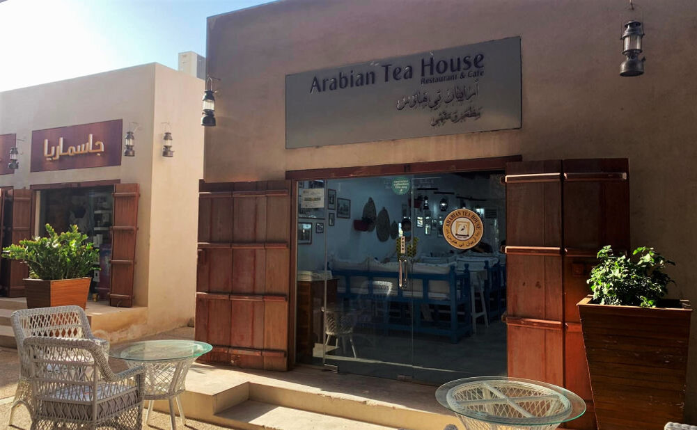 Ресторан арабской кухни «Arabian Tea House» находится в самом «Сердце Шарджи» - историко-архитектурном и культурном центре столицы эмирата Шарджи. И когда нагулявшись по древним узким улочкам и галереям современного искусства, вы проголодаетесь, то тут же, на музейном базаре, среди магазинчиков с сувенирами и антикварных лавок вы найдете этот интересный ресторан (Про «Сердце Шарджи» я рассказывал здесь) Сразу стоит отметить как симпатично и уютно оформлен ресторан, белые стены, голубая мебель и мягкие подушки создают домашнюю атмосферу. Есть большая застекленная терраса с кондиционерами, с которой видно залив. Для разогрева аппетита мы закали мутабаль. Это традиционная для всего Ближнего Востока закуска из печеных баклажанов с йогуртом, тахиной, специями и оливковым маслом. Нам сразу принесли горячую лепешку, в ресторане их пекут сами – она была явно только из печи. Мутабаль очень удобно и вкусно есть лепешкой. Мы еще не доели первую, а нам принесли новую лепешку. Надо же, какие знако
