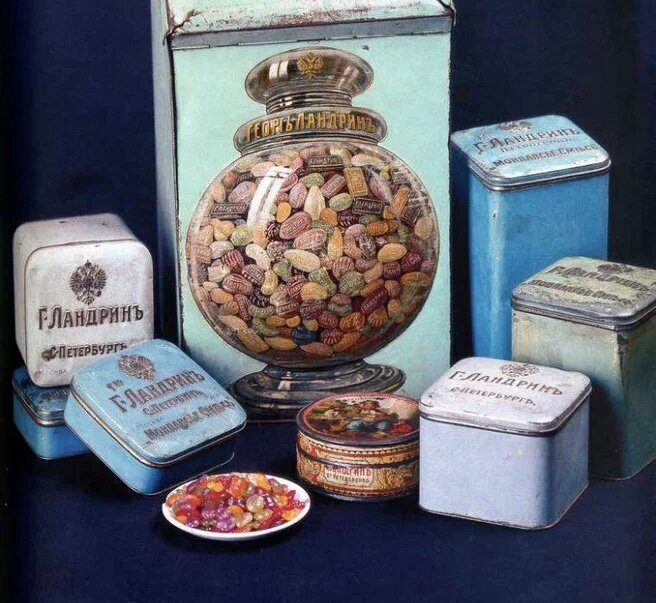 Жил-был в 19 веке один человек по имени Георг Ландрин. Фотографий его не сохранилось, о потомках тоже никто не знает. Вроде как звали его на самом деле Федором и был он родом из новгородской деревни, что стояла на реке Ландре (которая, впрочем, тоже на картах не значится). Зато имя «Г. Ландринъ» осталось на дореволюционных жестяных коробочках, в которых продавали маленькие разноцветные леденцы. Мы их зовем монпасье, а наши прапрабабушки чаще называли ландринками. Настолько эти конфетки были популярны в народе, что их везли в подарок детям с ярмарок, угощали девушек на свидании, а в самих коробочках потом хранили всякие домашние мелочи. Даже поговорку придумали — «лить ландрин на душу». Сейчас все чаще льют бальзам… Говорят, сам царь любил эти конфеты. У Владимира Гиляровского есть красивая легенда о Федьке Ландрине. Был он рядовым кустарем-кондитером, но с фантазией. Его леденцы были разного цвета — одна половина белая, а другая желтая, или красная, или еще какая… Носил он их на прода