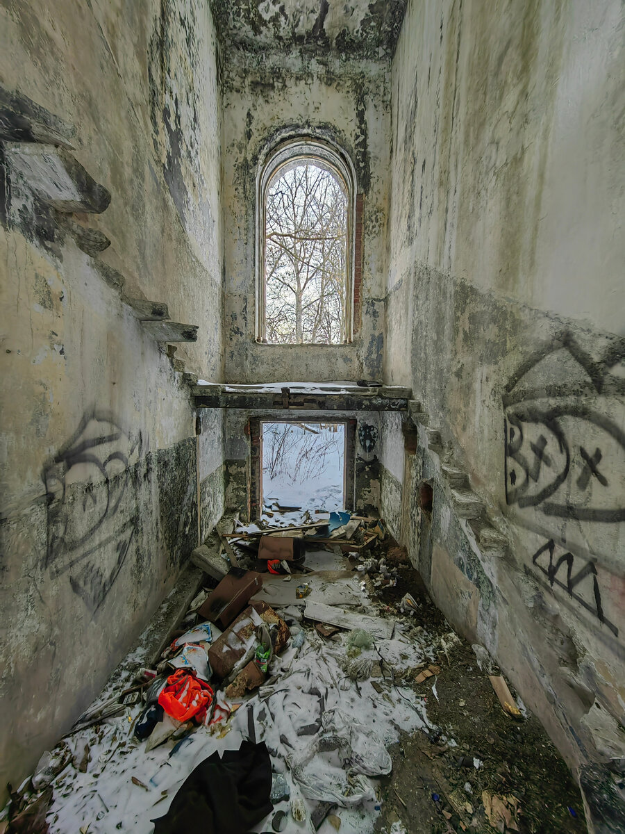 Друзья, как я написал в прошлом посте, в данный момент нахожусь в городе Клин (Московская область). Подробные отчеты о поездке будут позже. А пока что решил предоставить вам на суд небольшой исторический фото-факт. Сходил я, конечно же, в первую очередь не в туристическое место, а в то, которое расположено за железной дорогой и находится на противоположной стороне от города. Посмотреть старую руину.... превращенную в помойку... Некогда это здание было железнодорожным училищем, далее школой для детей при октябрьской железной дороге. Архитектор: Константин Тон. Он много чего построил в Петербурге, к слову. В Клину это был эксклюзивный проект, который был реализован уже после смерти архитектора. Комиссия искала разные проекты и наткнулась на этот. Дата постройки - 1890 год. У здания сохранился декор с одного из фасадов. Выглядит даже так впечатляюще! Почему оно такое узкое, спросите вы! А потому, что у дома ранее были деревянные пристройки, которые снесли в 1987 году из-за аварийноготю с