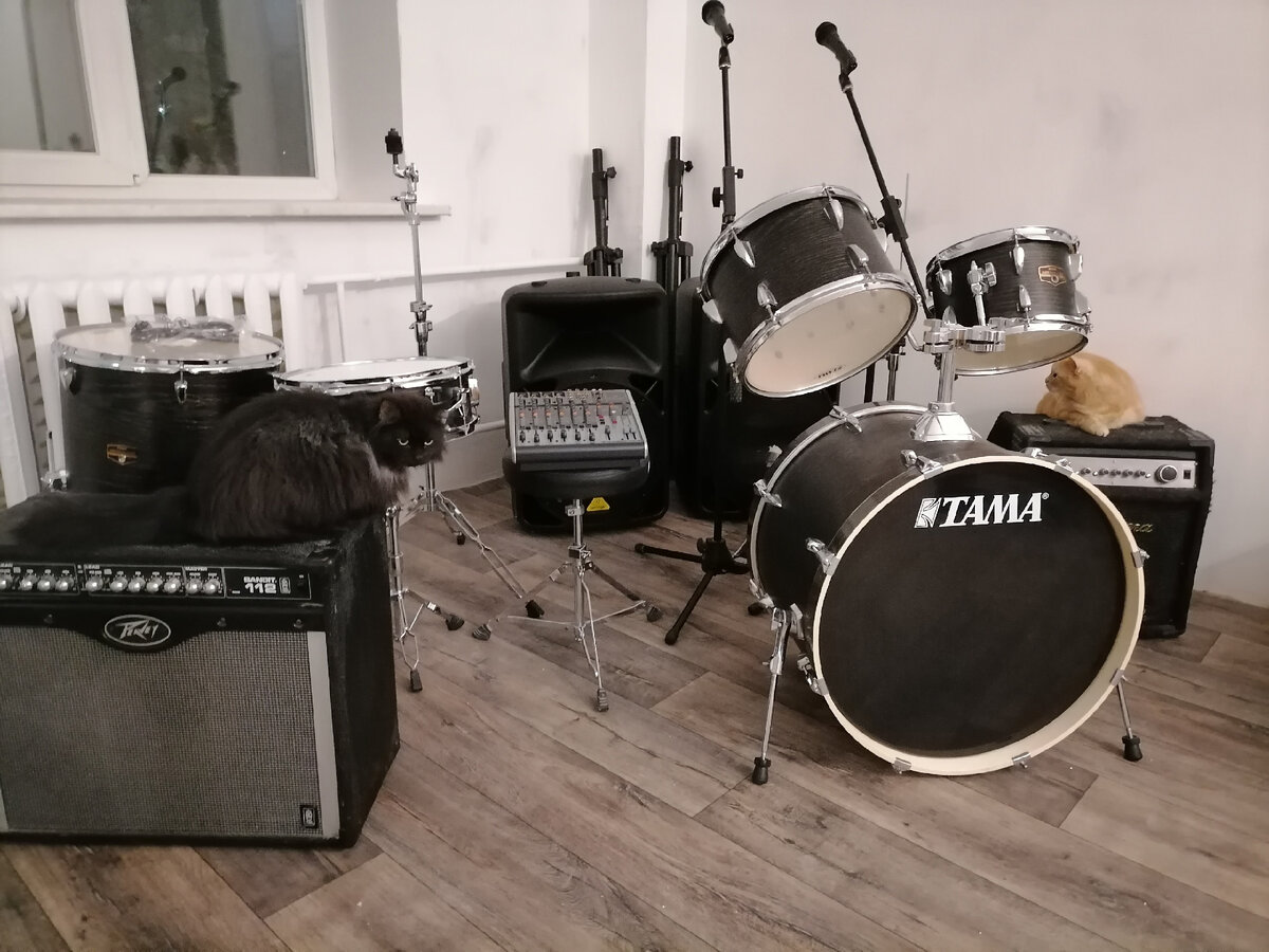 Теперь мы располагаем: Активная двуполостная акустическая система BEHRINGER B615D-EU (2шт) Стойки TEMPO SPS300BK (2шт) Барабанная установка TAMA IE52KH6W-BOW с 5 барабанами, набором стоек, педалью и стулом (1шт)