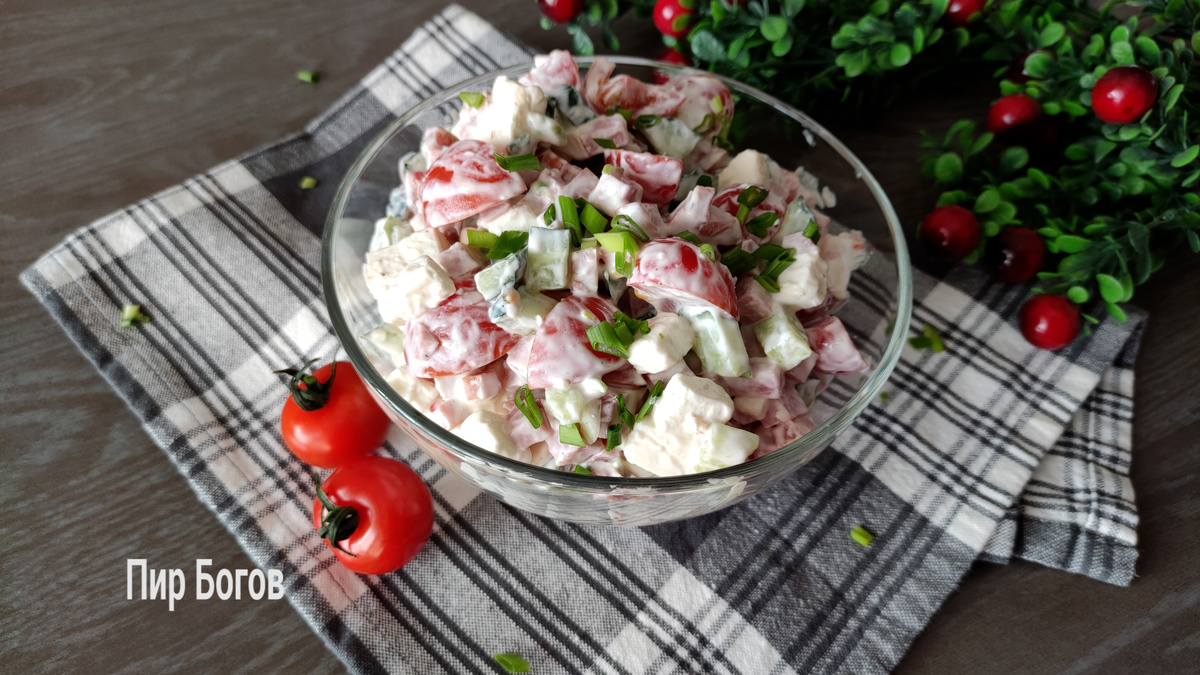 - YOUTUBE https://youtu.be/TOooehDCveI 🤗А это мы в VK: https://vk.com/pir.bogov А еще мы в Telegram: https://t.me/PirBogov *** Ветчину нарезаем маленькими кубиками. Все подготовленные ингредиенты сразу перекладываем в чашу для смешивания, так как мы не будем выкладывать салат слоями. Сыр фета или любой мягкий сыр нарезаем маленькими кубиками. Св