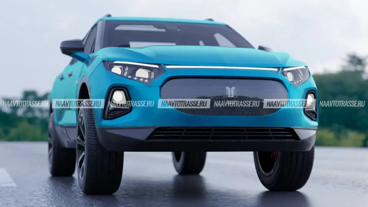 Представленная модель получила крупные фары головного света. Они выделяются необычной архитектурой. Основу головной оптики составляют 2 крупных огня, сверху которых протянулась тонкая LED полоска, а снизу — размещены 3 компактных светодиода. Между передними фарами разработчик поместил тонкую ленту, выполняющую декоративные функции. Под ней находится широкая радиаторная решетка со скругленными углами, что придает пикапу спортивный облик. Внутри нее располагается множество мелких точек, которые на опубликованных рендерах окрашены в синий цвет. Визуально они, во-первых, придают пикапу сходство с компактными кроссоверами Mercedes-Benz и, во-вторых, как будто бы выполнены из светодиодов. Но появление последнего решения на серийном «Москвиче» маловероятно. Внедрение светодиодов в радиаторную решетку существенно увеличит стоимость автомобиля.