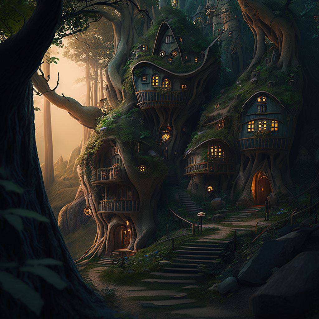Яромир следовал за загадочными существами через густой лес, перед ним внезапно возник грандиозный город, скрытый от посторонних глаз и, казалось, окруженный таинственной магией. Величественные дома, устроенные внутри деревьев, удивительно слились с окружающей природой. В центре города возвышалось громадное дерево с распахнутыми воротами, словно приглашая гостей в свои объятия. Все это казалось таким загадочным и удивительным... Существа повели Яромира сквозь ворота дерева, и только тогда он понял, что это не настоящее дерево, а искусственный проход, созданный на месте старинного дерева. Внутри скрывалась тайная лестница, ведущая на главную площадь города, расположенную на вершине дерева. Пред Яромиром раскрылась вся красота и великолепие города. Существа разговаривали между собой о чем-то. Они спорили и кричали, через некоторое время его провели в один из домов. Снаружи дом казался крохотным и уютным. Крыша была покрыта листьями, возможно, для сбора воды... Внутри же было удивительно