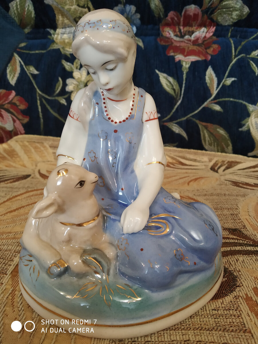 Аленушка сидящая (Аленушка и братец Иванушка) (Гжель) - Фарфор СССР Автор статуэтки Л. Азарова Произведена в период с 1950 по 1960 года. Высота 16 см. У Алёнушки красиво раскрашено лицо. Куплена за 3000р. Продана сразу за 4500р. В моей коллекции не задержалась. Сейчас статуэтки старая гжель очень популярны. Рекомендую начать собирать свою коллекцию именно с них.