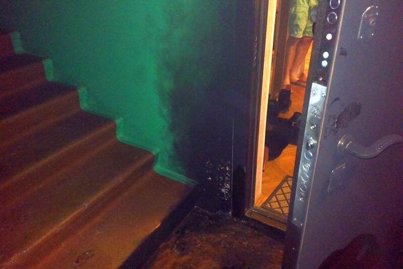 Семья Сайгутиных три года назад взяла кредит в 300 тысяч рублей на ремонт автомобиля Два года выплачивали исправно, но с сентября 2018 года с доходами стало туго, и семья задолжала банку 36 тысяч. Коллекторы начали угрожать, прокололи шины автомобиля и изрисовали дверь в квартиру. А потом ее подожгли. Дома в это время находилась Марина Сайгутина и двое детей-дошколят. Женщина вызвала пожарных, а сама с малышами спряталась в ванной. Спасатели эвакуировали людей с помощью автолестницы с четвертого этажа. Мать и дети получили отравление угарным газом и ожоги. Пострадавшие написали заявление в полицию.