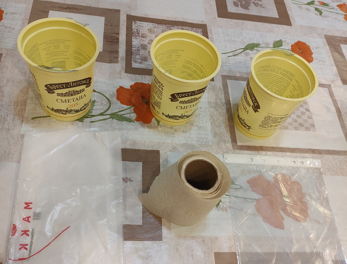 В этой статье я расскажу Вам про способ выращивания рассады томатов и перцев в пленке. Этим способом я пользуюсь давно. В сравнении с традиционным способом он более экономичен и эффективен. Посев желательно проводить на растущей Луне. Наиболее благоприятные дни по лунному календарю в 2023 году для посева семян перца, томатов и баклажанов: 22-26 февраля, 1-5, 11-16, 20, 22-25, 29-31 марта. На первом этапе выращивания рассады нам необходимо получить развитую корневую систему. Для этого, на этапе проращивания семян, я ограничиваю питание рассады, обеспечив только доступ семян к воде. За счет этого корень стремится к влаге, и корневая система стремительно развивается. Итак, нам понадобится пленка, семена, туалетная бумага, стаканчики (11-14 см высотой), вода. В качестве пленки могут использоваться любые полиэтиленовые пакеты, подойдут даже офисные файлы. Нарезаем пленку на полоски шириной 20-25 см и высотой примерно 15 см (на пару сантиметров выше Вашего стаканчика). Сверху укладываем сло