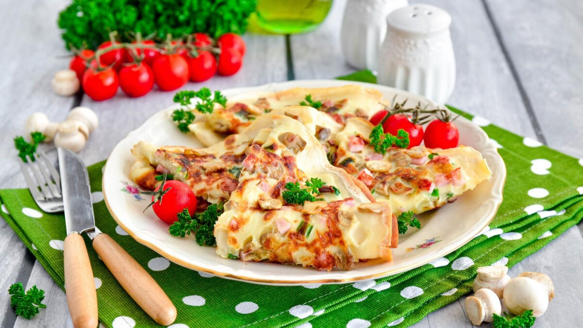 Сытные необычные блины с грибным припеком хороши сами по себе, но особенно они вкусные, если дополнить соусом. Кроме того, в них можно завернуть мясную начинку, получится очень сытное и вкусное блюдо. Впекать в тесто также можно любые продукты: овощи, яйца, зелень и фрукты.