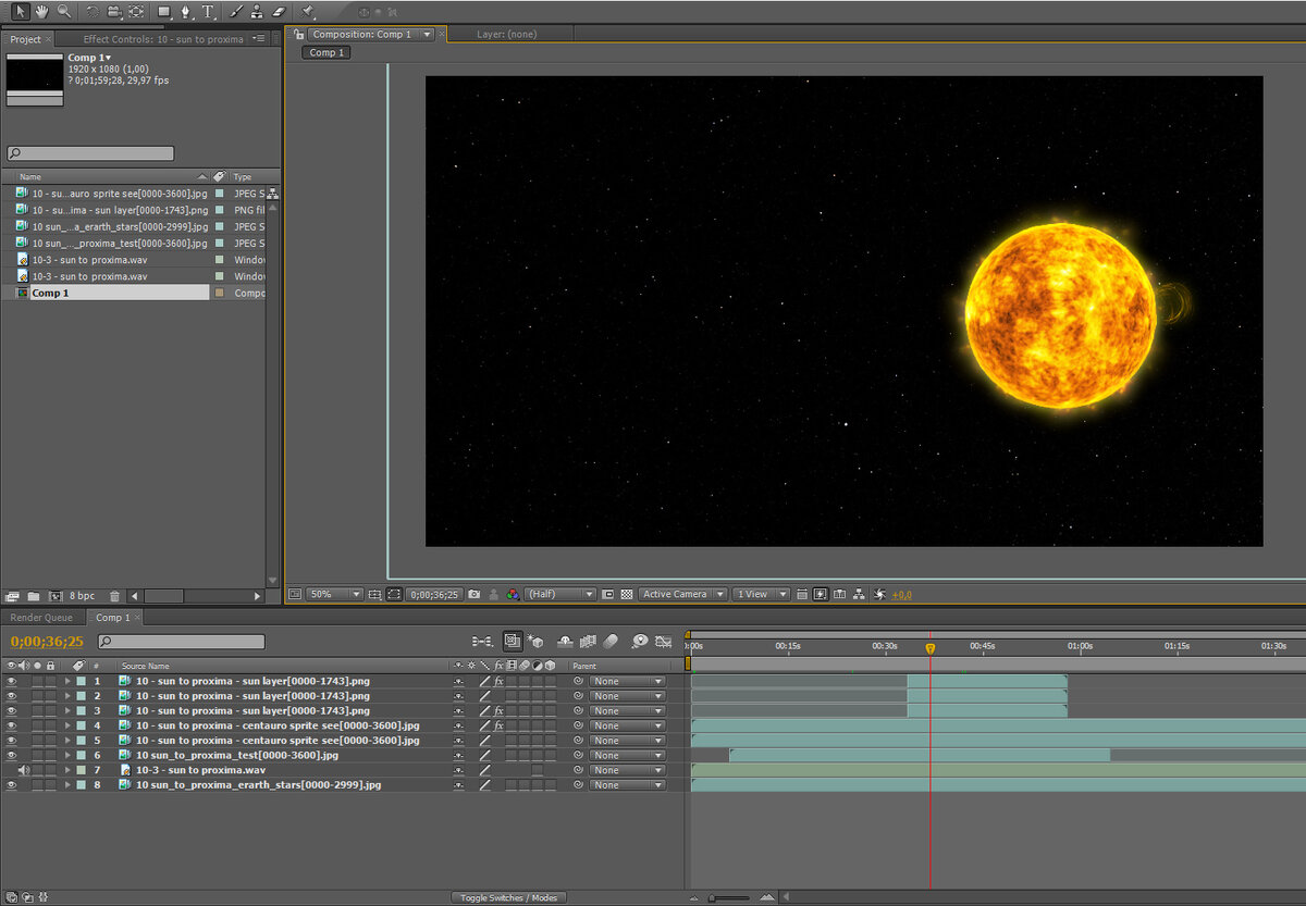 Не забросил, а отложил. Сюжет про ближайшую к нам звезду, я немного доработал и собрал в 3Д редакторе. Теперь нужно чтобы компьютер просчитал последовательности кадров разных слоёв. Для цвета планеты, для света звезд и для инфографики. Потом можно будет собрать видео в Афтере. И что-то мне кажется я буду ещё переделывать сюжет, потому что затея снять всё одной камерой была неплохая. Но как я анимировал движение камеры мне не нравится. Мой внутренний ОТК приказывает переделать.☝️😁 Поэтому переписываю сценарий, что бы было веселей. Меньше пауз и больше "экшОна" как говорят зрители. ☝️😮