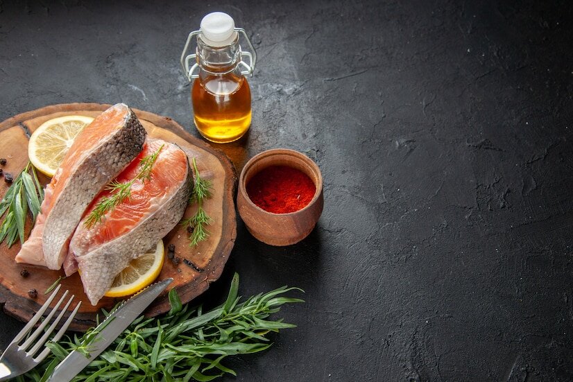 - Перемешайте оливковое масло с приготовленной смесью специй. Натрите полученной смесью каждый кусок семги со всех сторон и оставьте на 30 минут для маринования.