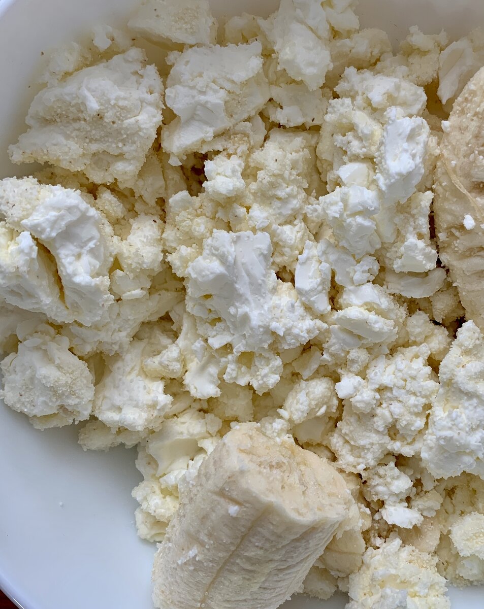 Ингредиенты : Для конфи подойдут любые не очень кислые замороженные ягоды, у меня черника и малина. Банан, творог и манку разминаем в миске, добавив соль и сахар по вкусу. Важно это делать вилкой, а не блендером, чтоб масса не поползла в сковороде. Получаем массу вот такой консистенции 👇 Формируем сырники и отправляем на средний огонь до золотистых бочков Тем временем ягодки с сахаром томятся в сотейнике 10 минут на среднем огне. Их необходимо периодически перемешивать Сырники готовы! Они не расползаются, очень нежные и вкусные:)