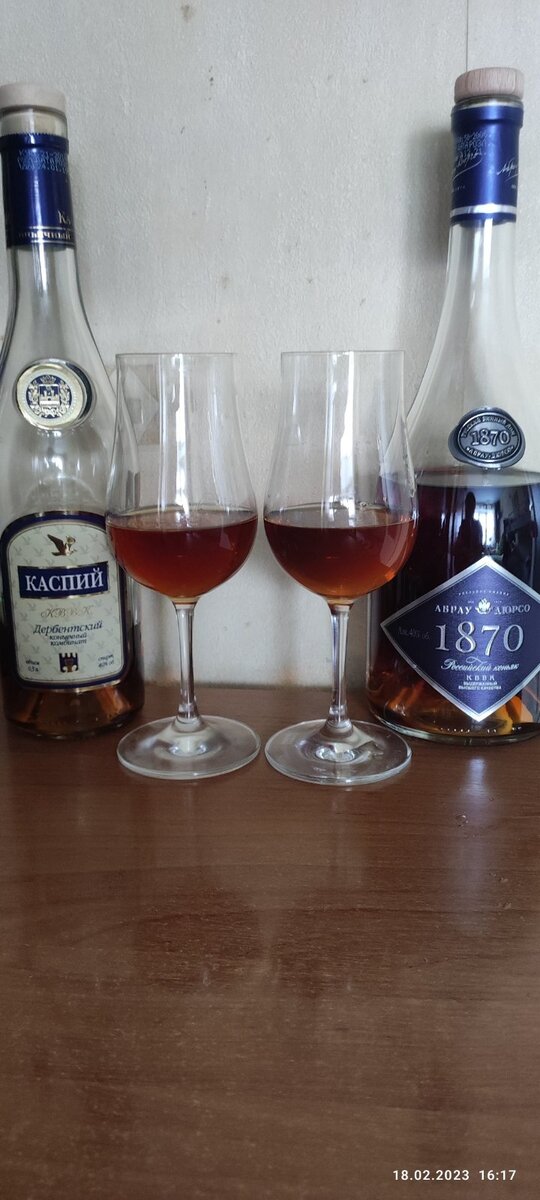 Всем очередной привет! Сегодня я осуществил мою давнюю задумку: выяснить, кто же из двух родных братьев-дагестанцев лучше, вкуснее и вообще чем же они отличаются! Встречайте двух восьмилетних КВВК близнецов-братьев с ДКК - Каспий и Абрау Дюрсо! Каспий - розлив 01.19. Открыт в сентябре 21 го, то есть постоял почти пол года, спецом ждал точно также ожидавшего возвращения домой из Москвы купленного мне Романом Абрау розлива 10.21. Так что по срокам выходит такая вот нестыковочка, не знаю насколько фатальная и как она изменит общий результат. По моему мнению, полгода для выдержанного коньяка не срок, чтобы развалиться, но это лишь в теории. Если кто считает иначе, полагая, что тест вышел не совсем справедливым - то примем это во внимание и постараемся сделать на это поправку. Но поскольку обзор на свежеоткрытый Каспий я делал, то есть от чего оттолкнуться и сделать честные выводы. Хотя, конечно, правильным было бы прогонять этих вслепую, заранее предполагая их похожесть, чтобы не давила на результат красивенькая бутылка АД... Но наливать в бокал я никому не доверяю. Так что обойдёмся как всегда.