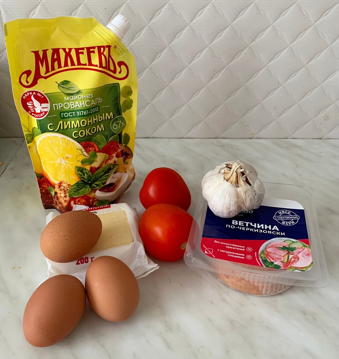 Все мы любим такие закуски. Ни один праздничный стол не обходится без них, но, тем не менее, многие молодые хозяйки не знаю рецепт этих вкусных и простых блюд, а многие могли уже его и позабыть. Нам понадобится: Кухонный инвентарь: Готовим начинку. Сыр и чеснок натираем на мелкой терке. Добавляем майонез и тщательно перемешиваем. Количество чеснока зависит от ваших предпочтений. Масса должна получиться достаточно густая. Нарезаем помидору кружочками и ложкой наносим начинку сверху. Наша первая и самая простая закуска готова. Далее берем ветчину и также нарезаем кружочками. Кладем начинку в середину и соединяем концы ветчины зубочисткой или шпажкой. Вторая закуска готова. Для третьей закуски необходимо яйцо разрезать пополам или на четвертинки. Желток измельчить и добавить в уже готовую начинку. При необходимости добавить еще майонез. И вот все готово. Выкладываем наше блюдо на тарелку и подаем на стол. По желанию помидоры и яйцо сверху, а рулетики с ветчиной по краям можно посыпать нар