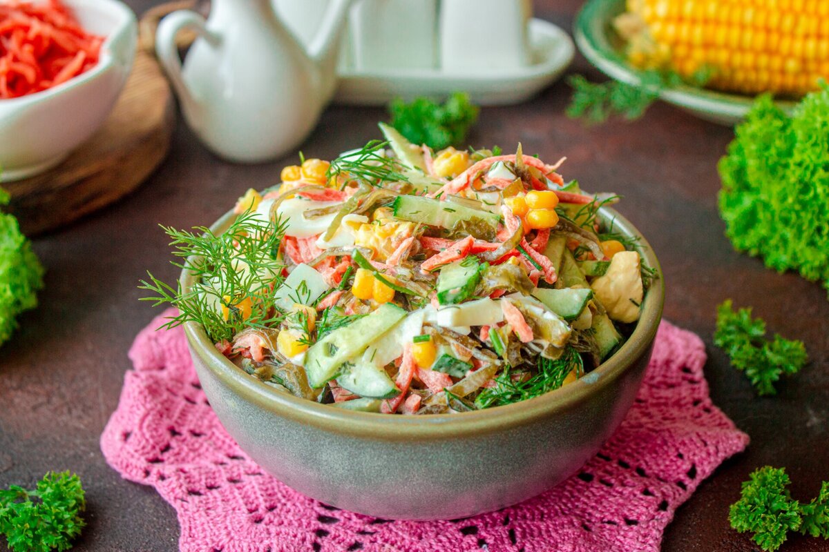 Салат из морской капусты - это простой, вкусный и очень полезный салат, который может стать идеальным дополнением к вашему обеду или ужину. Морская капуста известна своими богатыми питательными свойствами, в том числе содержанием витаминов, минералов и антиоксидантов, что делает ее идеальным выбором для людей, следящих за своим здоровьем. В этом рецепте мы сочетаем морскую капусту с другими свежими овощами и ароматными специями, чтобы создать вкусный и сбалансированный салат, который легко готовить и который вы и ваши гости обязательно оценят. Ингредиенты: Инструкции: Готово! Этот салат из морской капусты и овощей легкий, здоровый и богатый витаминами и минералами, и прекрасно подходит в качестве легкого ланча или ужина.