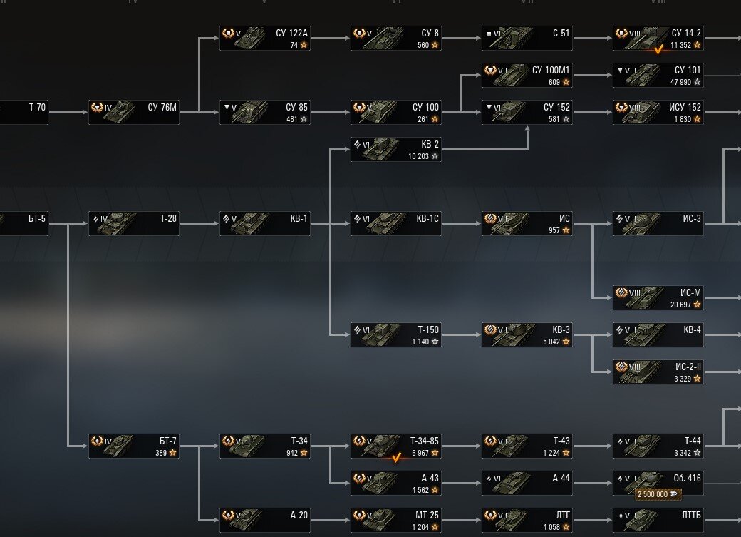 Всем привет! Не помню подымал ли я эту тему, но если и подымал, то достаточно давно. А так как все равно в рандоме СССР встречается достаточно регулярно, то сделаем краткую сводку прям по всей нации. И, думаю, следует заранее уточнить - да, да, это мнение автора, вы можете быть не согласны и вообще считаете ИС-7 самым крутым танком в игре. Но в любом случае пишу по тому как сам вижу, а покидать в меня камни(или чем похуже) можно в комментариях. Так как я насчитал аж 12 веток советской техники, то буду краток, дабы никто не заснул по дороге. Об.261 Не скажу что арту вообще на данном этапе стоит качать, но если качать то пожалуй именно 261. Ветка в целом комфортная, топ машина считается лучшей артой 10-го лвл. Хотя меня из всей ветки больше всего прет СУ-14-2. Об. 268/4 Однозначно стоит качать. Правда на девятом уровне будет тяжеловато, но 10-ка однозначно сильный танк. Лично для меня самое крутое в 268/4 - при вагоне брони есть хорошая мобильность, а плюс серьезная пуха и мы имеем штурм