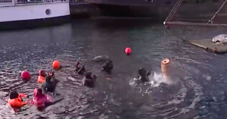 Se videoen: Frømandsklub slår katten af tønden i Nyhavns iskolde vand
