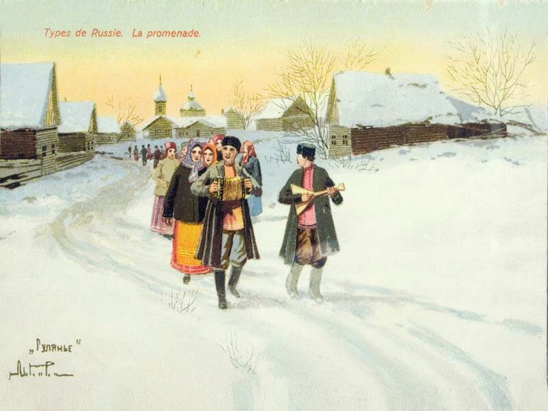Для настроения прикладываем дореволюционные открытки в тему.