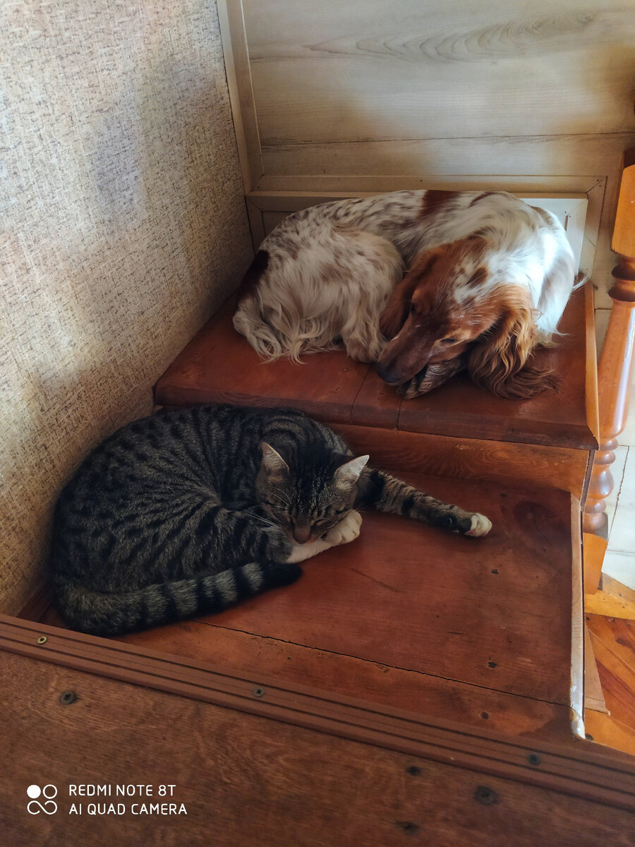 Так можно описать дружбу между Ричи и нашим котом Кузей. Кузя уличный кот и прибился к нам, когда ему было примерно около года. И как любой уличный кот, знает собак только как врагов. Ричи же привезли домой в возрасте 1,5 месяцев, когда как Кузя уже давно обжился в нашем доме. И появление собаки было для него что-то из ряда вон выходящее. Кузя открыто недолюбливал щенка и обижал, когда тот хотел с ним поиграть и познакомится. Превосходя по размерам, кот был очень смелым, но время шло и со временем рос и Ричи, а также улетучивалась смелость кота. Соответственно их роли поменялись местами. Если я скажу, что на этом конец, то это будет не интересная история и этого бы ролика не было. А дальше дела обстояли так. Когда Ричи вырос то задирал кота только, когда тот пытался забрать его вкусняшки, или когда на Кузю ругались хозяева. А Кузя тоже нашел для себя выгоду в виде очень мягкой лежанки и вкусного лакомства собаки. Сейчас это два друга, которые гуляют, спят и даже учатся чему-то новому в