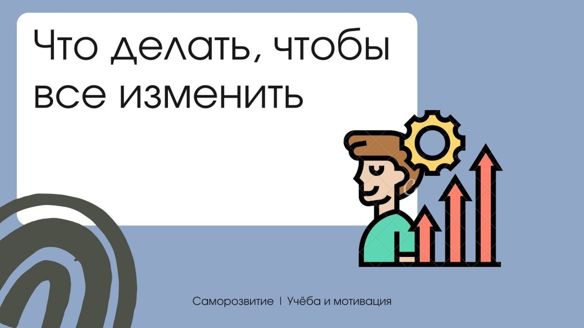 Что делать, чтобы все изменить 🔸Пойми, что тебе по-настоящему нравится. 🔸Откажись от мусора, который ты ешь, пьешь и куришь каждый день. 🔸Учи иностранные языки. 🔸Читай книги. 🔸Проводи с толком каждые свои выходные. 🔸Начни вести блог или обычный дневник. 🔸Ставь цели. 🔸Научись печатать на клавиатуре вслепую 🔸Оседлай время. Научись управлять своими делами так, чтобы они работали почти без твоего участия. 🔸Откажись от компьютерных игр, бесцельного сидения в социальных сетях и тупого серфинга в интернете. 🔸Перестань читать новости. 🔸Научись рано вставать. 🔸Старайся окружать себя порядочными, честными, открытыми умными и успешными людьми.