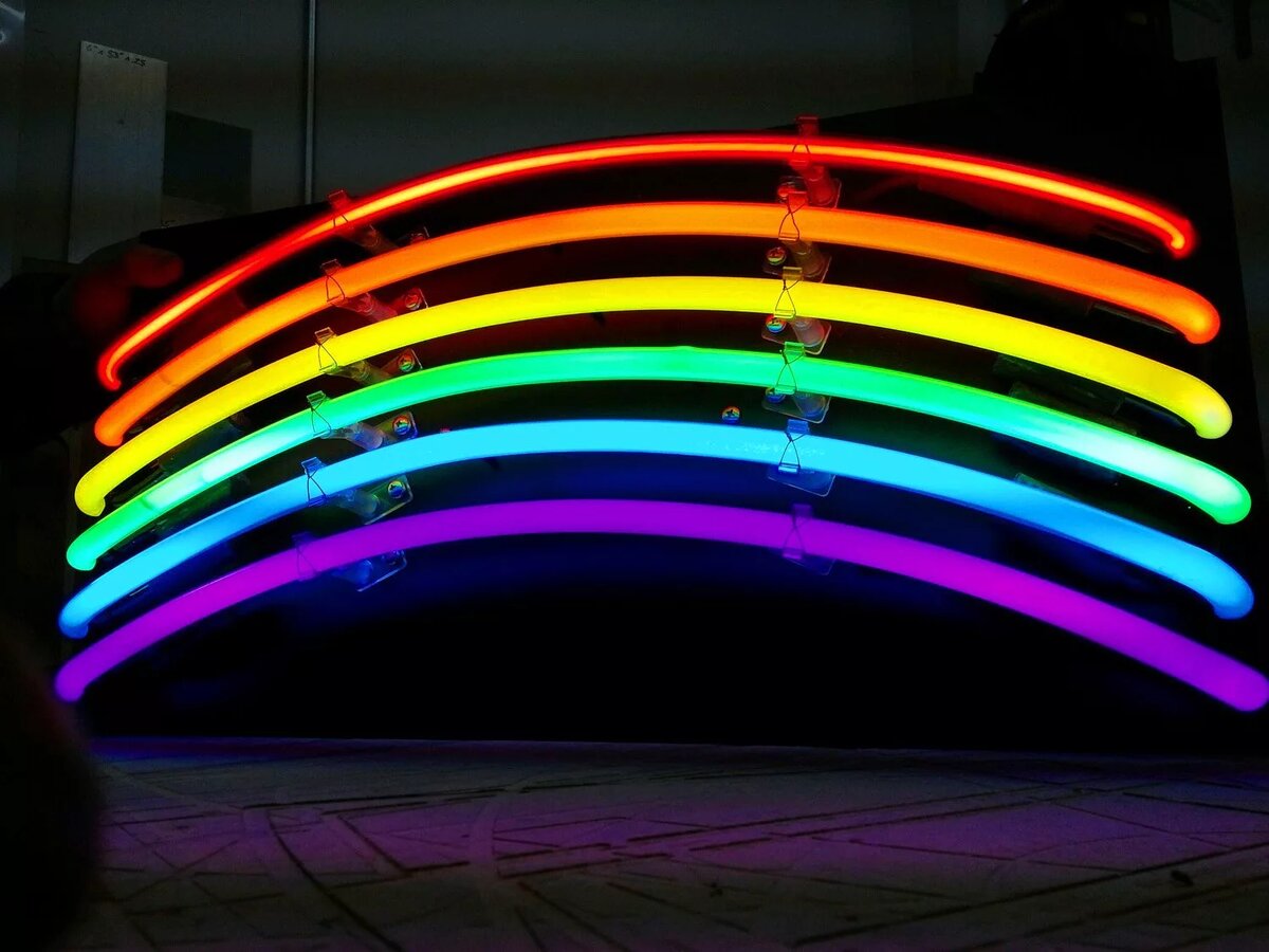 Неон — это газ. До конца 19 века он спокойно исполнял почетную обязанность быть частью земной атмосферы. Но тут его открыл английский химик Уильям Рамзай. И спокойной жизни пришел конец. Находчивые инженеры изобрели неоновые лампы, и в 20 годы 20 столетия неоновая реклама покорила весь мир. Настоящий цвет неона Когда мы думаем о неоне, то представляем себе горящие разными цветами названия магазинов и ресторанов. На самом – то деле неон светится ярким, красно – оранжевым светом. Богатой гаммы цветов добиваются введением в газ ламп паров ртути и натрия. В Лас-Вегасе улицы ярко освещены изогнутыми газовыми трубками, зазывающими туристов поиграть в казино или послушать пение Уэйна Ньютона. Как добывают неон? Неон содержится в атмосфере, поэтому может именно в этот момент, вы вдыхаете чуть – чуть неона. Не волнуйтесь, в одном литре воздуха неона так мало, что его не хватит, чтобы наполнить зернышко воздушной кукурузы. Чтобы отделить неон от воздуха, воздух приходиться сжижать. Точно так же