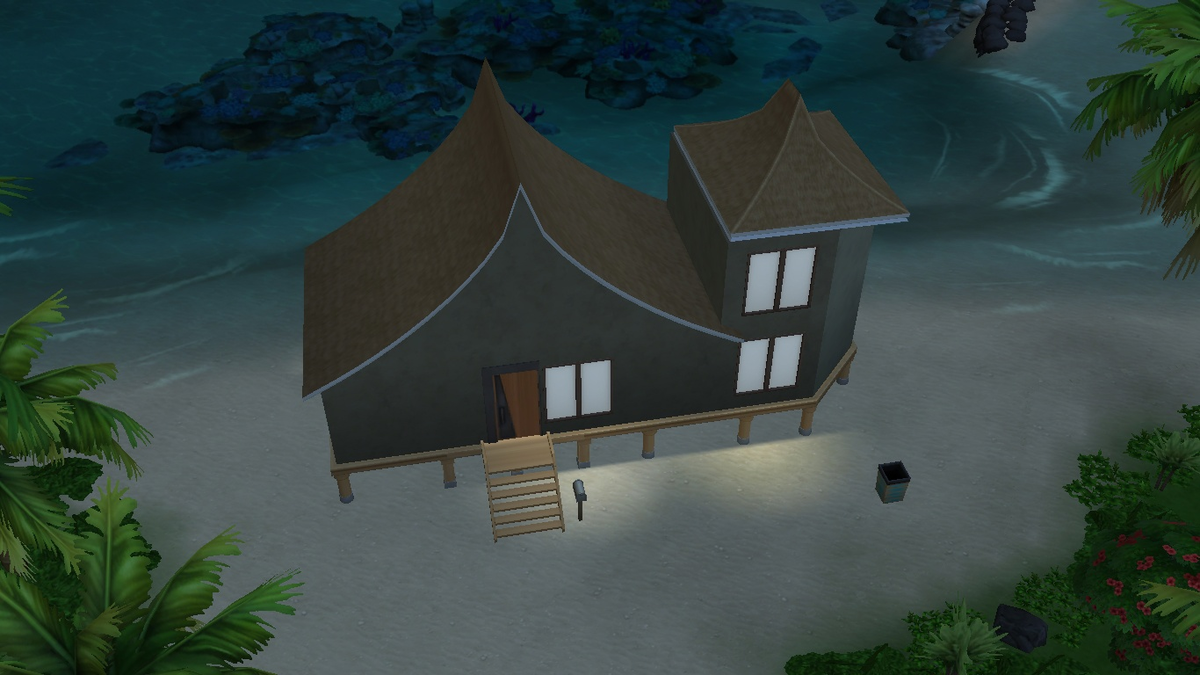 Добро пожаловать в домик на берегу моря. Представьте: море, пляж, песок, тепло, а вокруг вас окружают пальмы. Заглянем внутрь? На окне круглый год светит гирлянда: главная героиня любит свет, который от нее исходит. Дома её встречает любимая собака. Наша героиня очень любит готовить. Она предпочитает хранить посуду в открытых шкафах, пить чай одинокими вечерами. Хотя... как они могут быть одинокими рядом с лучшим другом человека — собакой? Верно, никак! Тут у нас небольшая гостиная с уютным стеллажом, в котором стоят книги, свечи и другие необходимые в быту мелочи. Подъём на второй этаж. Что же скрывается справа от лестницы? Рабочий кабинет! Над столом висят любимые плакаты: главная героиня решила увлечься их коллекционированием. Позади стоит большой стеллаж с комнатными растениями. Кстати, на первом этаже ещё прячется ванная комната с большим зеркалом. И с джакузи! На втором этаже спальня-оранжерея. Главная героиня любит растения и каждый раз их становится всё больше. С другой ст